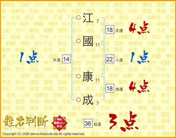江國康成さんの総運は36画の3点!