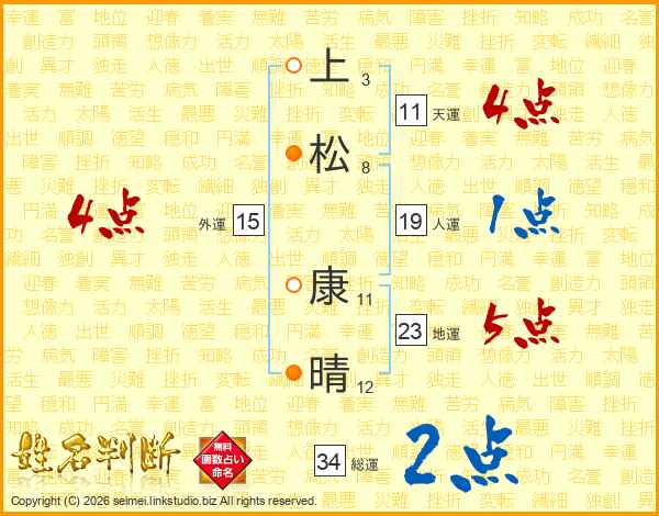 上松康晴さんの天運は11画の4点!