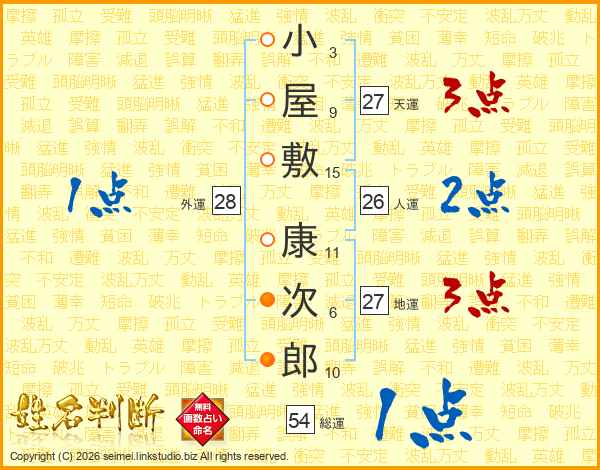 小屋敷康次郎さんの天運は27画の3点!