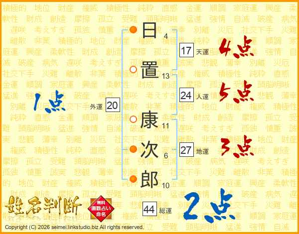 日置康次郎さんの総運は44画の2点!