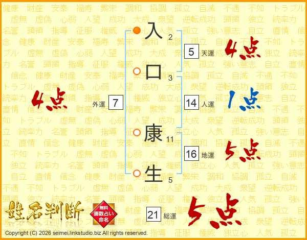 入口康生さんの総運は21画の5点!