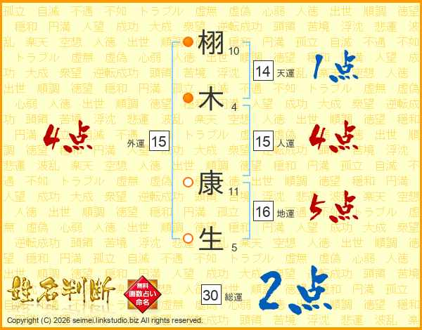 栩(10画)木(4画) 康(11画)生(5画)