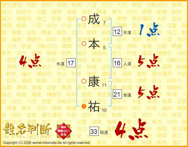 成本康祐さんの総運は33画の4点!