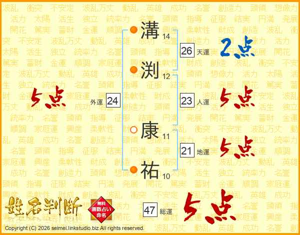 溝(14画)渕(12画) 康(11画)祐(10画)