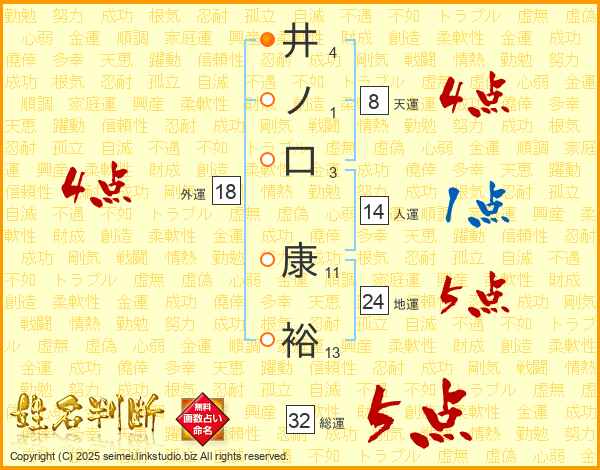 井ノ口康裕さんの総運は32画の5点!
