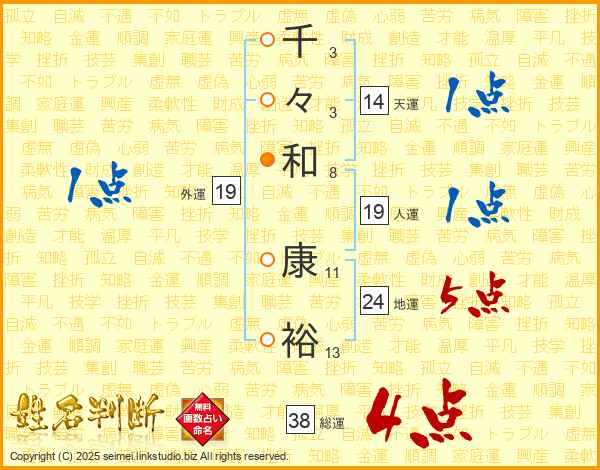 千々和康裕さんの総運は38画の4点!