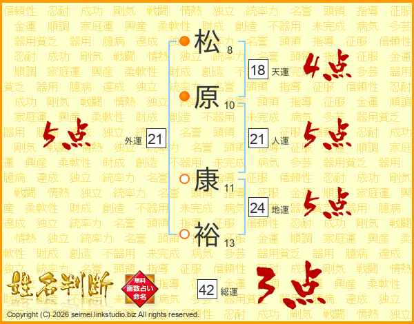 松原康裕さんの人運は21画の5点!