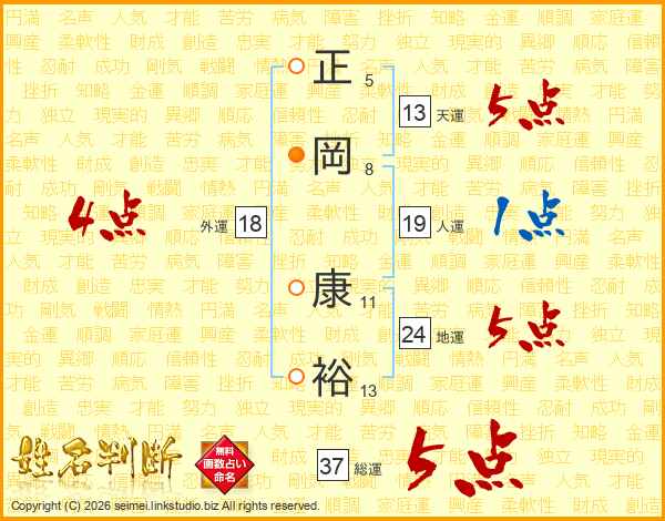 正岡康裕さんの総運は37画の5点!