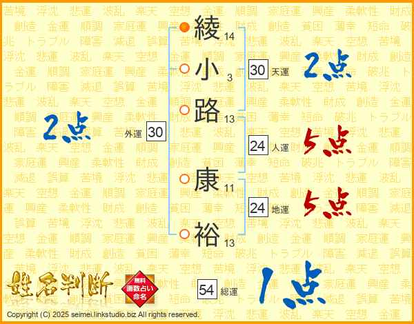 綾小路康裕さんの総運は54画の1点!