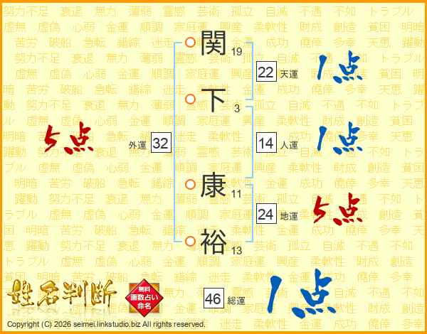 関下康裕さんの総運は46画の1点!