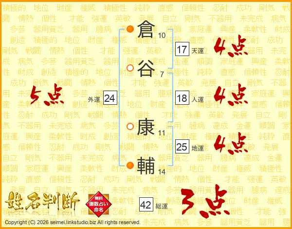 倉(10画)谷(7画) 康(11画)輔(14画)
