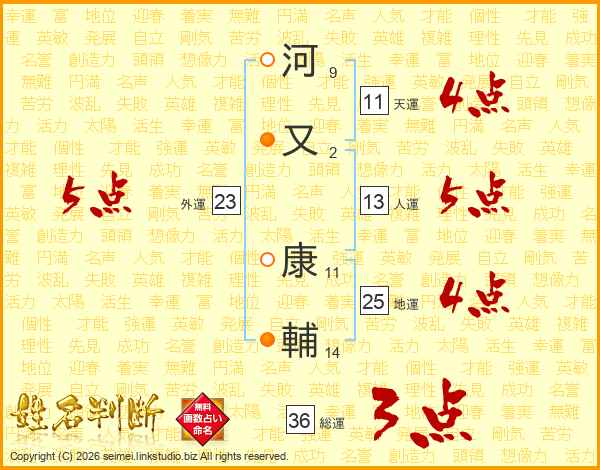 河又康輔さんの人運は13画の5点!