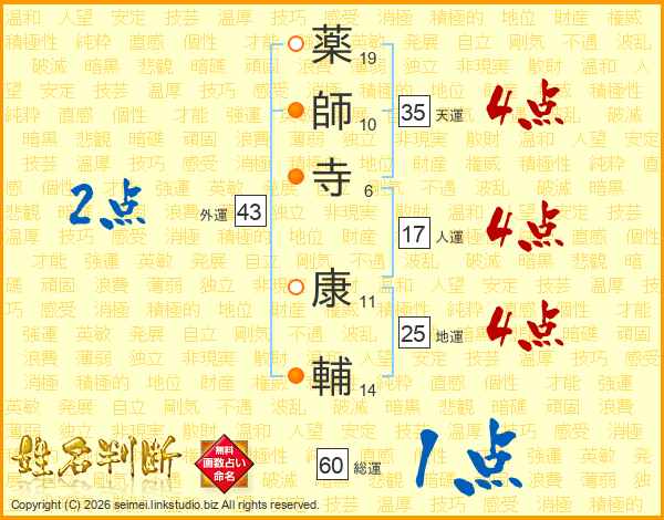 薬師寺康輔さんの天運は35画の4点!