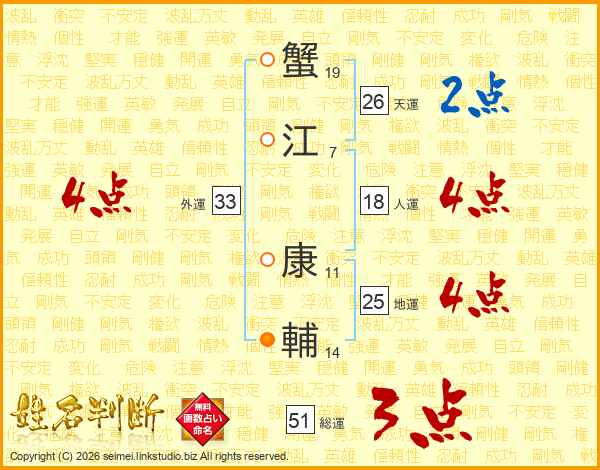 蟹江康輔さんの外運は33画の4点!