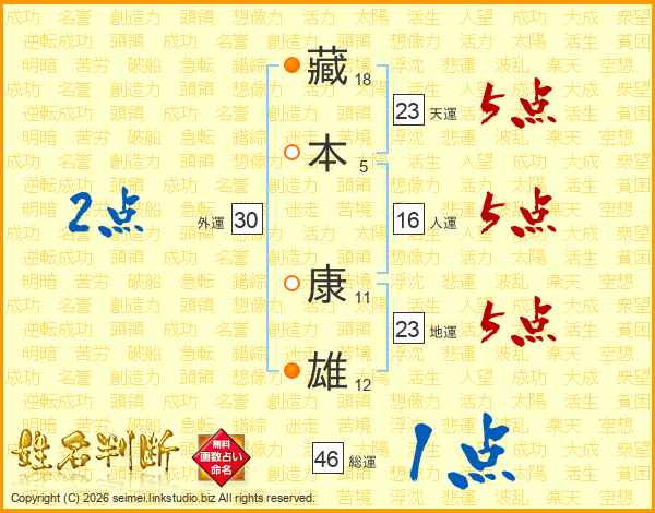 藏本康雄さんの天運は23画の5点!