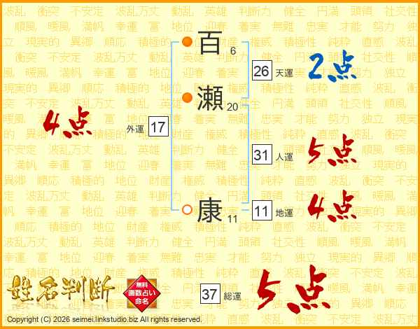 百瀬康さんの総運は37画の5点!