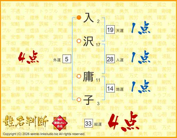 入沢庸子さんの総運は33画の4点!