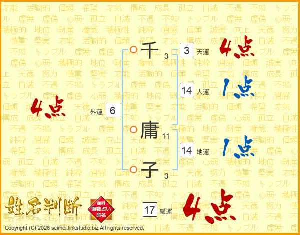 千庸子さんの総運は17画の4点!