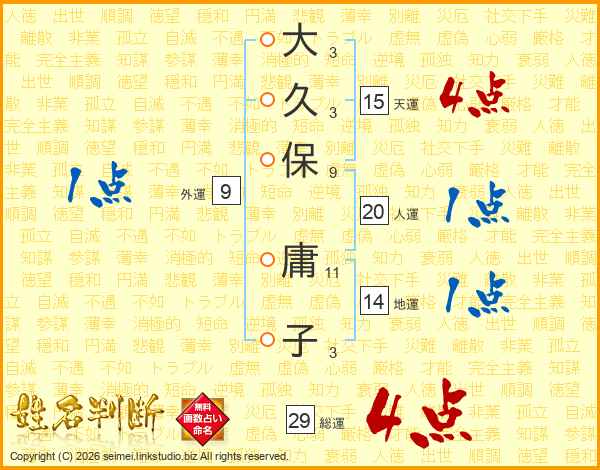 大久保庸子さんの総運は29画の4点!