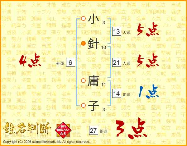 小針庸子さんの天運は13画の5点!