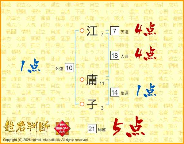 江庸子さんの総運は21画の5点!