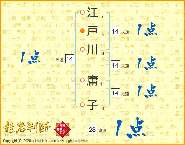 江(7画)戸(4画)川(3画) 庸(11画)子(3画)