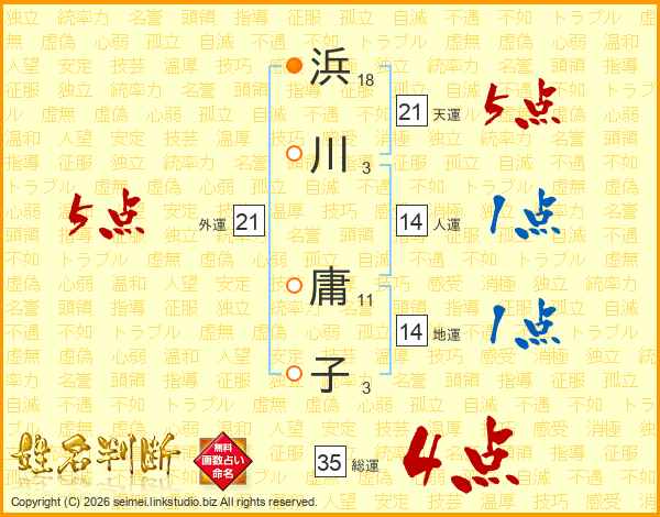 浜川庸子さんの外運は21画の5点!