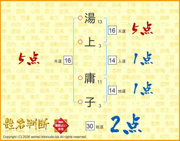 湯上庸子さんの総運は30画の2点!