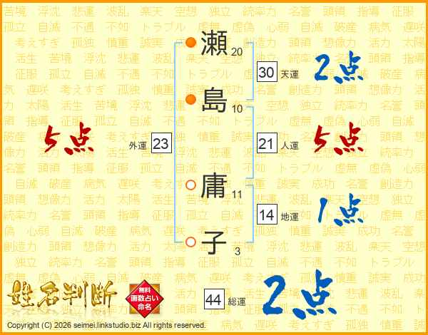 瀬島庸子さんの総運は44画の2点!