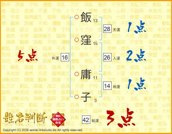 飯窪庸子さんの総運は42画の3点!