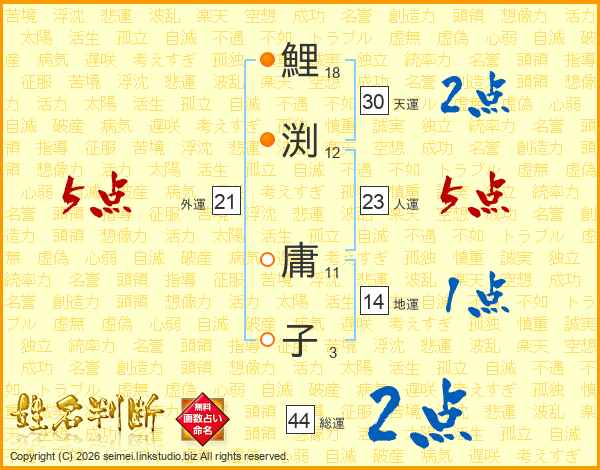 鯉渕庸子さんの総運は44画の2点!