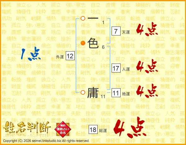 一色庸さんの総運は18画の4点!