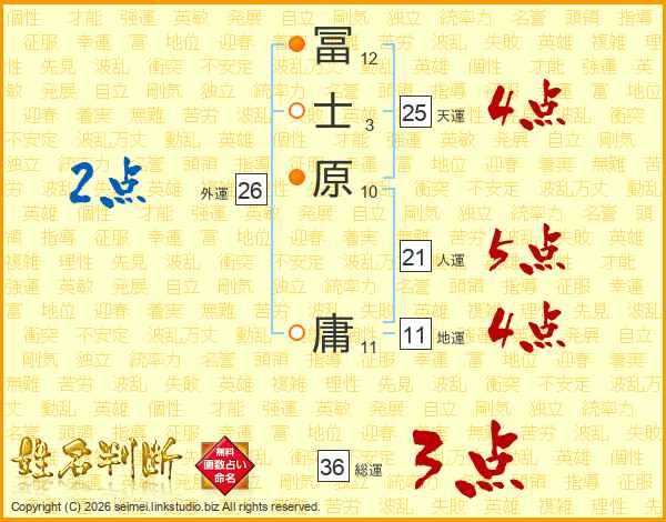 冨士原庸さんの天運は25画の4点!