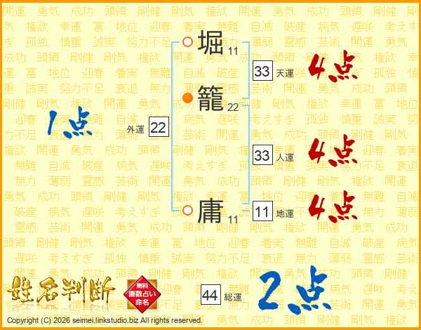 堀籠庸さんの総運は44画の2点!