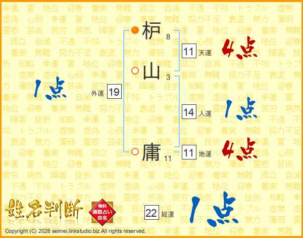 枦山庸さんの地運は11画の4点!