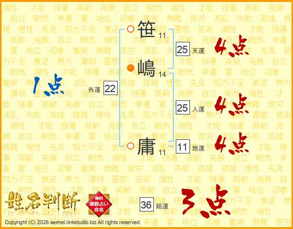 笹(11画)嶋(14画) 庸(11画)