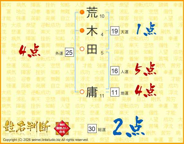 荒木田庸さんの地運は11画の4点!