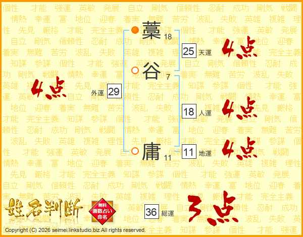 藁谷庸さんの総運は36画の3点!