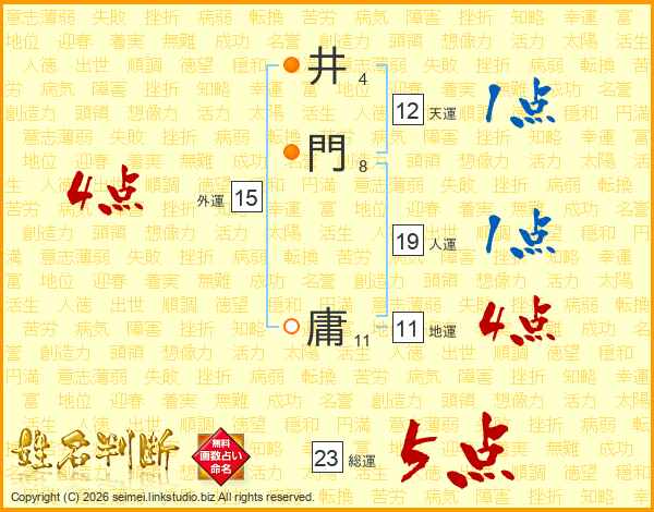 井門庸さんの総運は23画の5点!