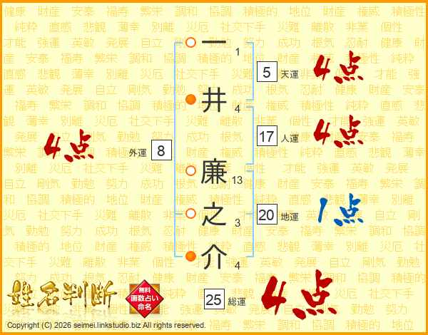 一(1画)井(4画) 廉(13画)之(3画)介(4画)