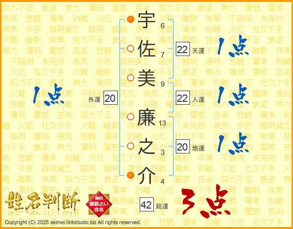 宇佐美廉之介さんの総運は42画の3点!
