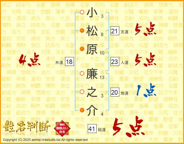 小(3画)松(8画)原(10画) 廉(13画)之(3画)介(4画)