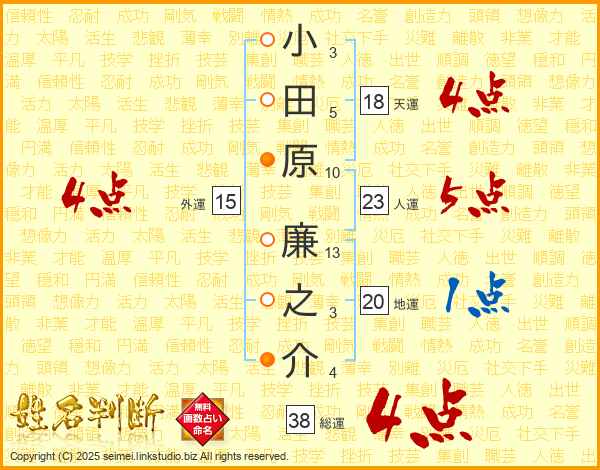 小(3画)田(5画)原(10画) 廉(13画)之(3画)介(4画)