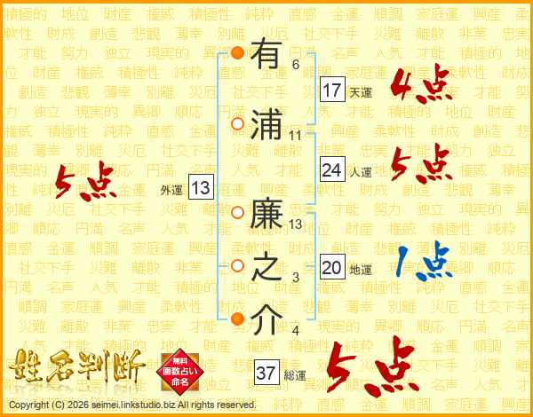 有(6画)浦(11画) 廉(13画)之(3画)介(4画)