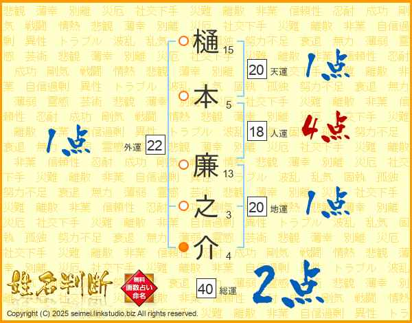 樋(15画)本(5画) 廉(13画)之(3画)介(4画)