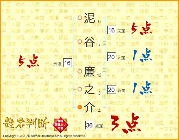 泥(9画)谷(7画) 廉(13画)之(3画)介(4画)
