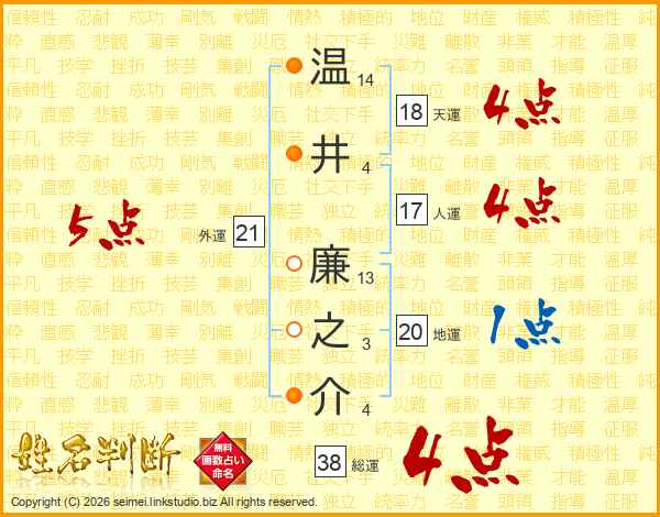 温井廉之介さんの総運は38画の4点!