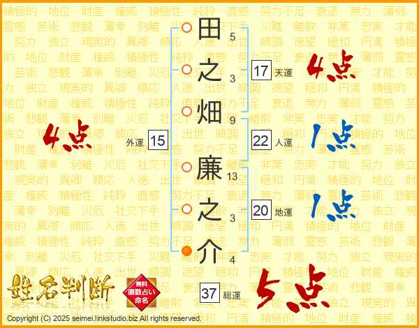 田之畑廉之介さんの総運は37画の5点!