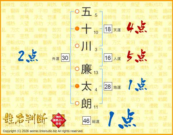 五十川廉太朗さんの総運は46画の1点!