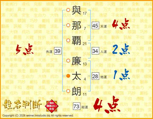 與那覇廉太朗さんの天運は45画の4点!